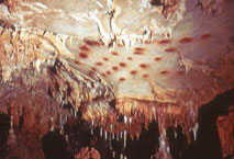 Plusieurs grottes (Pech-Merle, Rouffignac, Grotte de Lascaux, Cosquer…)                      présentent des panneaux de tracés digitaux ou                      macaronis. Ce sont des surfaces, parfois importantes, pouvant                      atteindre plusieurs mètres carrés portant un                      entrelacs de tracés irréguliers, enchevêtrés,                      formés en promenant la pointe de deux ou trois doigts                      sur une surface rocheuse recouverte d'une couche naturelle                      d'argile. Certains de ces tracés paraissent avoir                      été faits avec des instruments à dents,                      en pierre ou en bois. Aucune image nette ne peut être                      identifiée en dehors de quelques contours, probablement                      fortuits, évoquant un profil animal. On a voulu voir                      dans ces panneaux l'origine de l'art paléolithique.                      Cette théorie, ancienne et maintenant à peu                      près abandonnée, n'avait pas d'autre                      justification que le désir de ses auteurs de voir l'art                      évoluer du simple au complexe et du fortuit à                    l'élaboré.                                             A lire                                                                                                             |